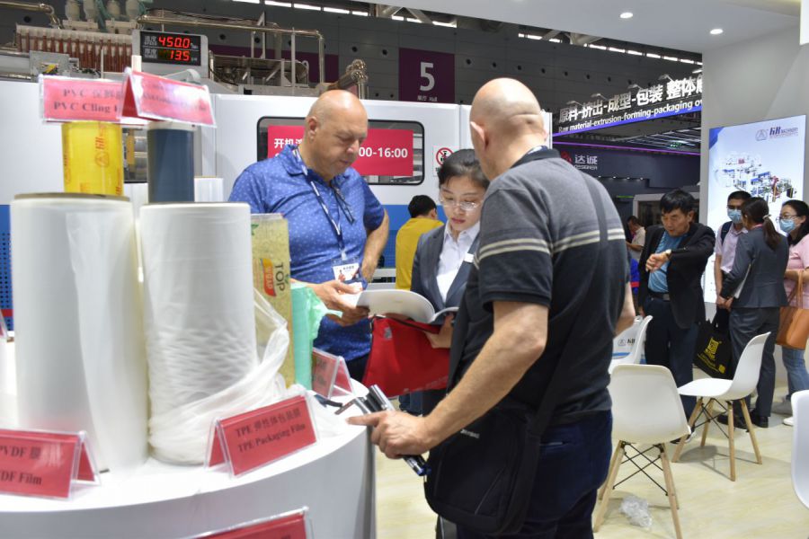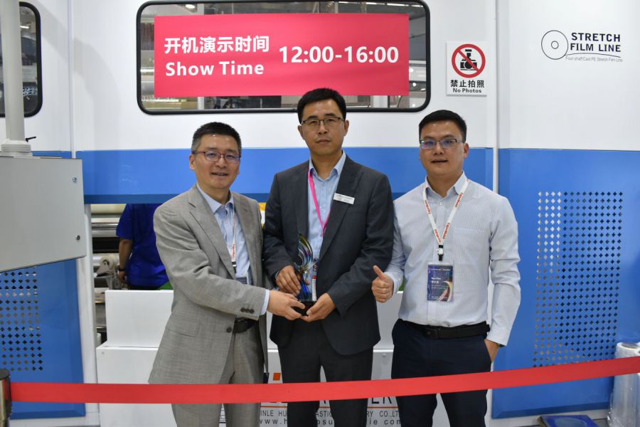 展會上,新樂華寶流延機大放異彩,攜3米11層高速全自動纏繞膜生產線亮相展會,現場開機速度高達500m/min,讓國內外客戶再一次見證我們在流延行業雄厚的技術實力與創新能力,贏得了業界及客戶們的一致好評。